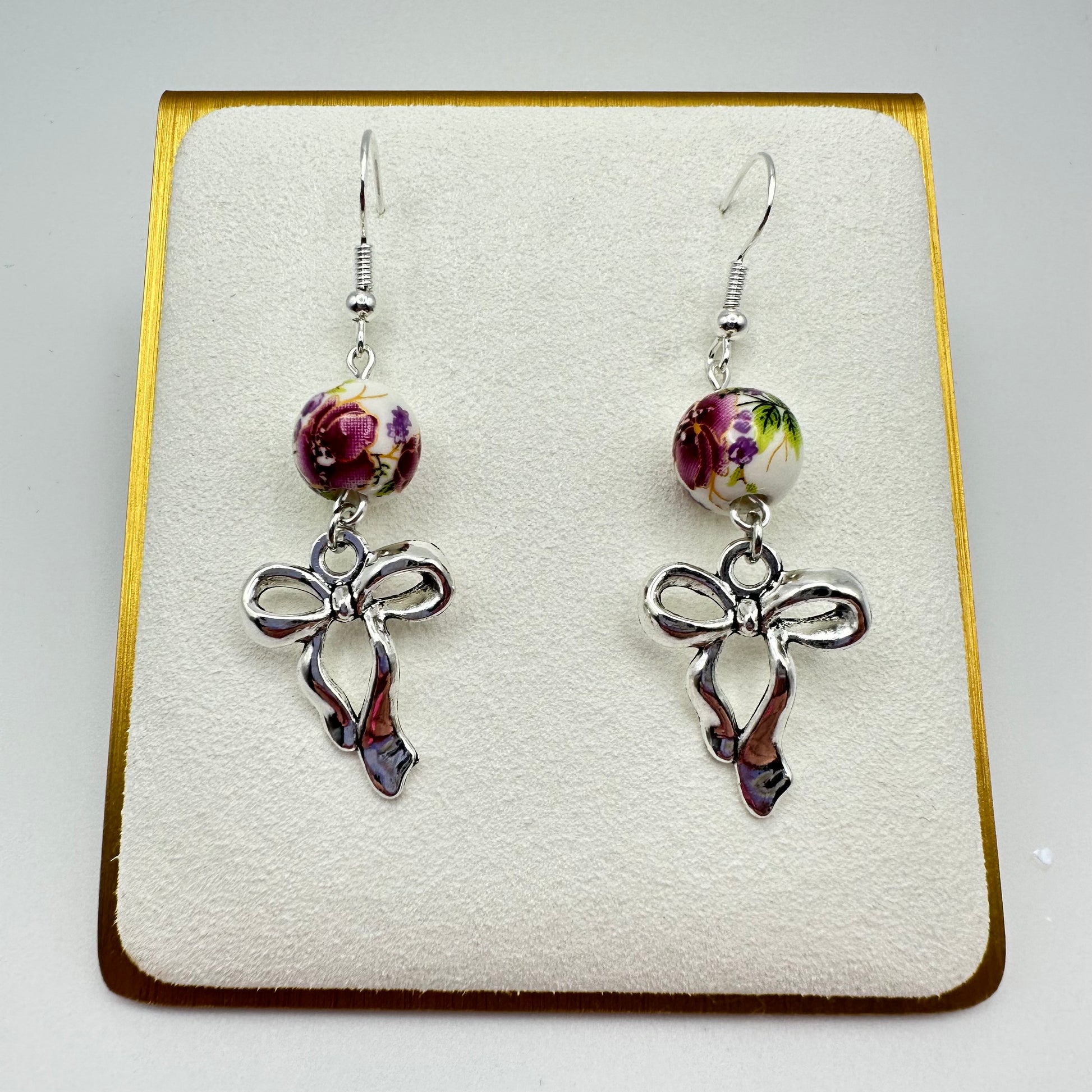 These dainty floral earrings are a graceful nod to garden strolls and daydreamed ballet recitals. The Garden Waltz Ceramic Bow Earrings feature vintage-inspired floral ceramic beads and silver ballet bow charms that swing softly with every step. They’re light, lovely, and full of soft charm — a wearable waltz for your ears. 🌸🩰