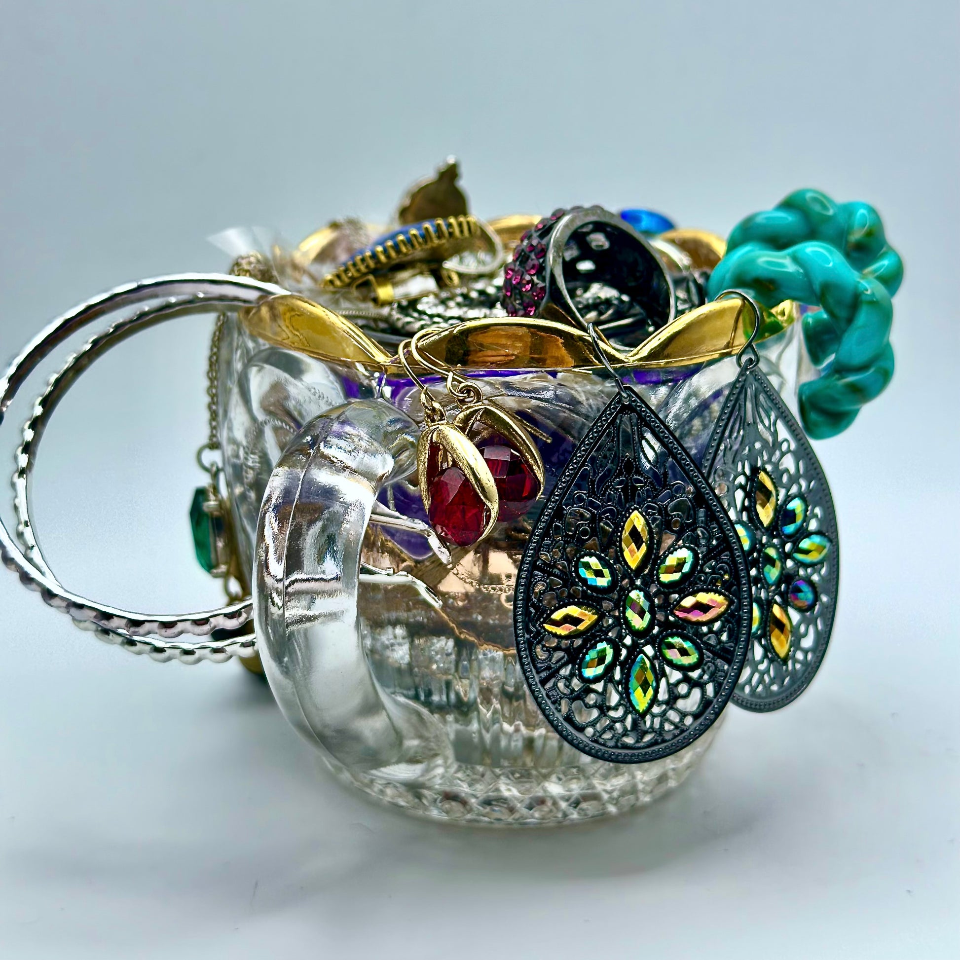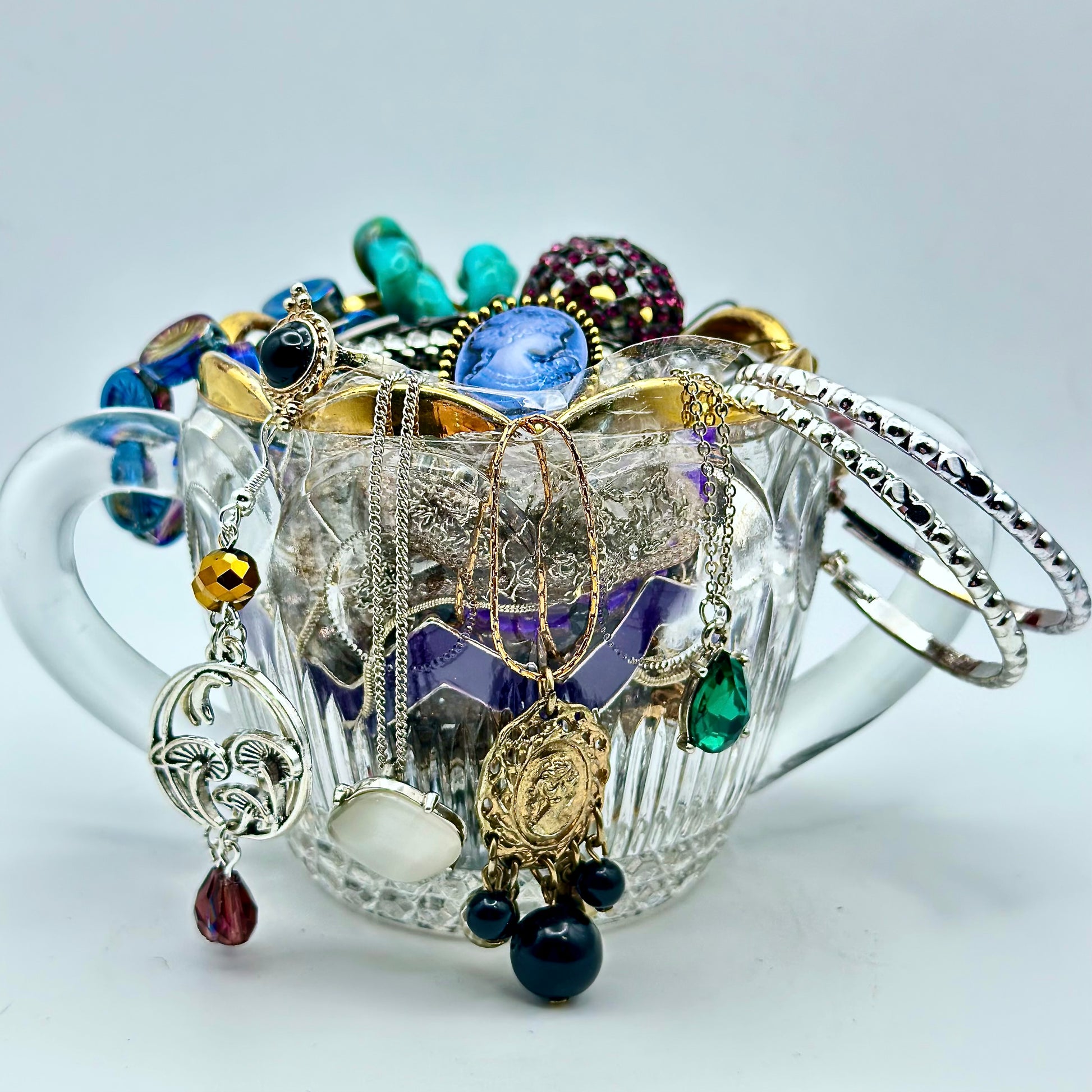 Inside you will discover earrings, bracelets, necklaces, and rings 🌟 All pieces are wearable, in good shape, and packed with love 💕 These jars take time to curate ⏳ and not every piece may be your exact style but that is part of the magic of the mystery 🪄